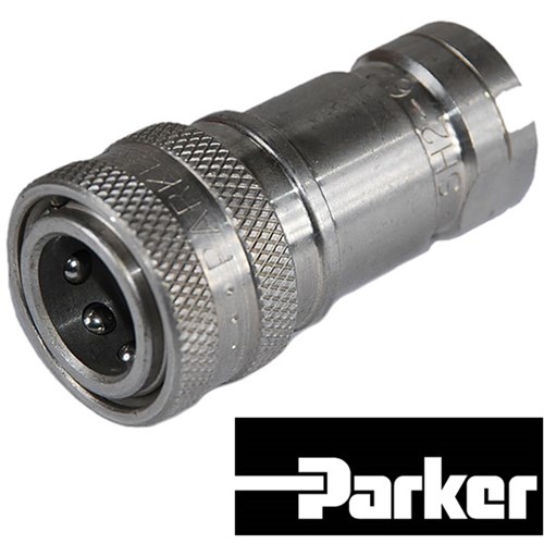 Parker 60 Series female coupling provides a versatile coupling for use across a wide variety of hydraulic applications. Accepts ISO 7241-1 Series B nipples. Poppet style valve, coupling is made from stainless steel and used in application such as pressure washers.