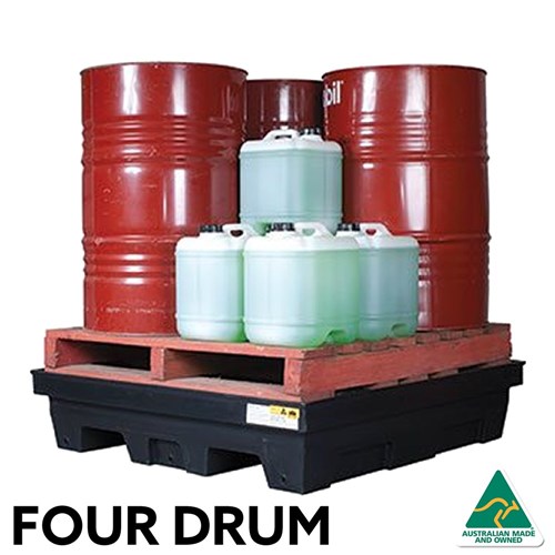 4 Drum spill container with hold up to 4 x 205L drums. With a sump capacity of 242L this will assist you to keep your workplace compliant.