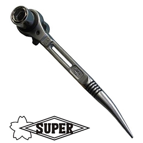 Used in the construction industry, the Ratchet Podger Spanners have two sizes in the ring end for convenience and the Podger end is used for aligning bolt holes.
