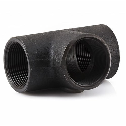 Machined black steel screwed pipe fitting for industrial and steam applications.