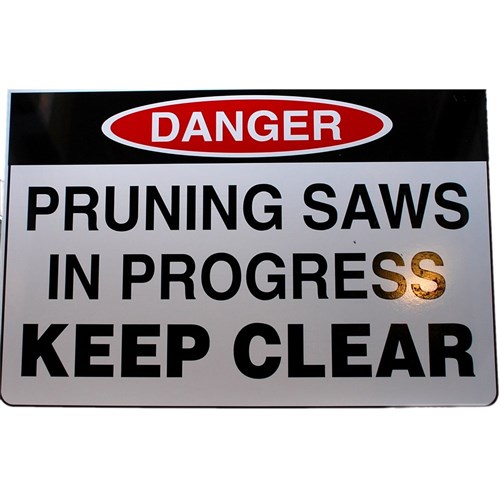 PRUNING SAW IN PROGRESS SIGN