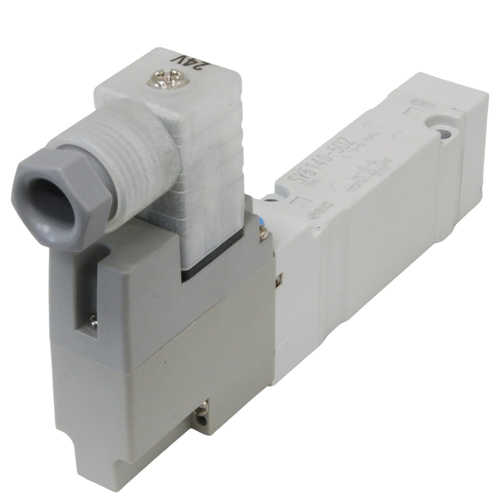 SMC® SY 5140-5DZ designed to control pneumatic actuators. Configured to extend and retract cylinders and is set up as a 5 port x 2 position  (extend/retract). Its primary use is to extend and retract pneumatic actuators.