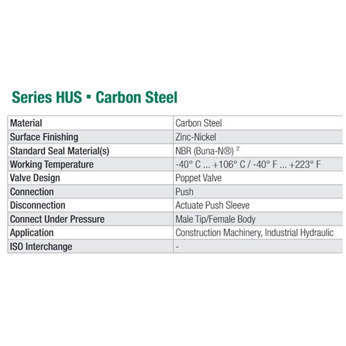 Stauff push to connect HUS Series male transportation coupling. Tema 10000 equivelent.