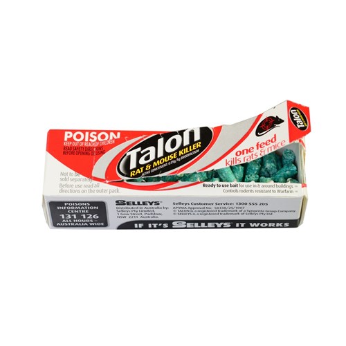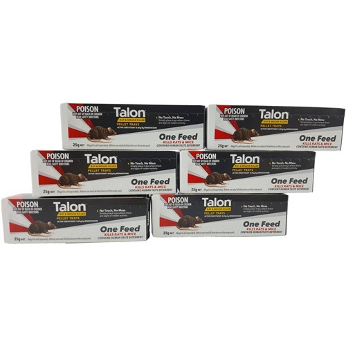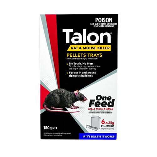 Talon Pellets are a cereal-based bait designed to replicate the preferred food source of most rat and mice species. This rodenticide is effective against rodents resistant to other anti-coagulant rodenticides, ensuring that one feed is sufficient to eliminate rats and mice.