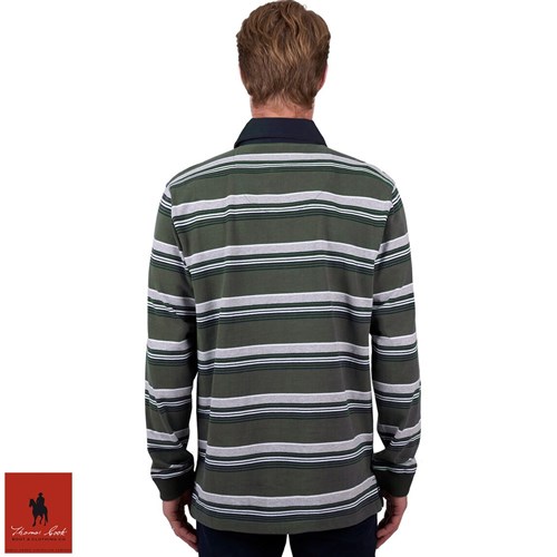 Bold, durable, and designed for comfort, the Thomas Cook Sam Rugby is a rugged essential with timeless appeal. Crafted from heavyweight peached cotton jersey, it features yarn-dyed stripes, a cotton drill collar with contrast underside, and reinforced details throughout. Perfect for casual days or weekend wear, it’s finished with classic Thomas Cook touches for a heritage-inspired look.