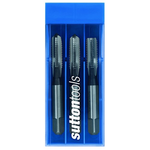 Sutton HSS Tap Set, Metric Coarse. Set includes one each of a Taper, Intermediate & Bottoming Tap. Made from High Speed Steel these straight flute taps are suitable for both hand and machine operations for general purpose applications in materials up to 1000N/mm2.