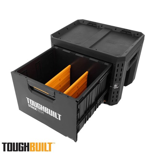 The ToughBuilt® StackTech 1-Drawer Locking Box offers oversized tool organisation in a modular, stackable system. Its auto-locking drawer, padlock-ready design, and deep storage make it ideal for power tools, gear, and heavy loads while maintaining flexibility for customised builds.