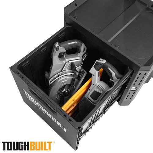 The ToughBuilt® StackTech Rolling 1-Drawer Box combines heavy-duty storage with mobility for professionals needing to transport larger tools on-site. Its integrated locking mechanism, padlock compatibility, and all-terrain wheels make it ideal for electricians, contractors, overlanders, and content creators on the move.