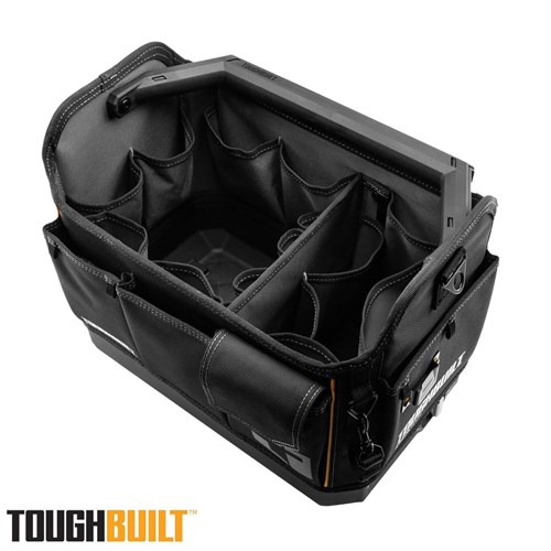 The StackTech Tool Tote is built for jobsite performance and mobility. Its auto-locking interface secures the tote on top of any StackTech box, while the slide switch and lock indicator ensure safe transport. A pivoting handlebar and padded shoulder strap make carrying and access effortless. Inside, the tote features two compartments with multiple internal and external pockets, plus a metal tape measure clip to keep tools organised. Built for durability, it is constructed from rugged 1680D fabric with a waterproof polymer hard base, ensuring it withstands tough conditions. Fully compatible with the StackTech system, it allows Pros to build a modular setup customised to their trade.