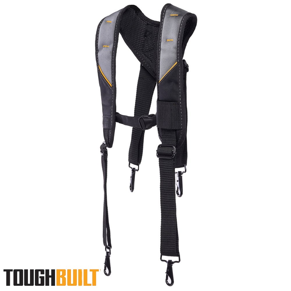 The ToughBuilt® Pro Padded Suspenders are engineered for all-day comfort and support. Cushioned padding evenly distributes the weight of heavy tool belts, helping relieve stress and strain during the longest workdays. Universally compatible, the suspenders feature 4 adjustable belt loops to fit almost any belt, shoulder attachment points for extra ClipTech™ pouches, and a rear loop for easy hanging at the end of the day. Constructed from durable 1680D fabric with extreme-duty steel hardware and reinforced stress points, these suspenders are built to withstand the toughest professional environments.