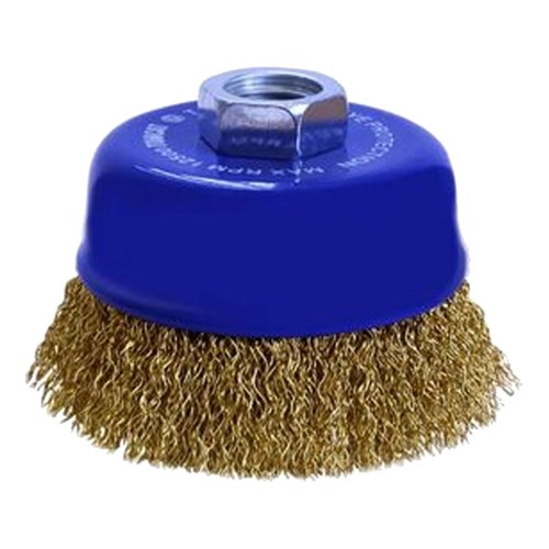 Tomcat Brass Coated High Carbon Steel Wire Cup Brush is great for deburring and rust removal. The brass coated steel wire construction provides high tensile strength and cutting performance. Best suited for use on steel, brass, iron, plastic and wood.