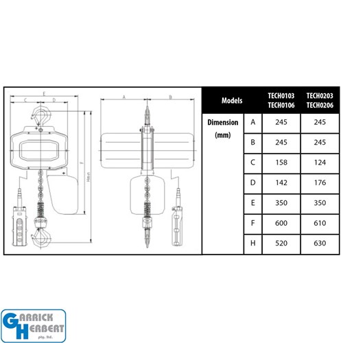 The TOHO ELEC CHAIN HOIST 1T/3M is a robust and efficient solution for lifting heavy loads, offering a 1-tonne (1000kg) capacity with a standard 3-meter lift. Designed with a lightweight and compact body, it features a high-efficiency 1200W motor for smooth, powerful operation at a lifting speed of 6m/min. The hoist is built with a pressed steel structure and high-strength alloy steel hooks for maximum durability. It includes a 7.1mm grade 80 alloy steel load chain and limit switches at both the top and bottom to prevent chain runout for added safety. Designed to meet stringent safety standards, this hoist is IP54 rated for the unit and IP65 rated for the control, ensuring protection against dust and water. Compliant with ASNZS 1418.2 standards, the TOHO Electric Chain Hoist offers flexibility to suit your specific lifting needs.