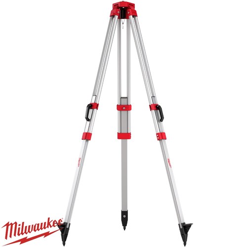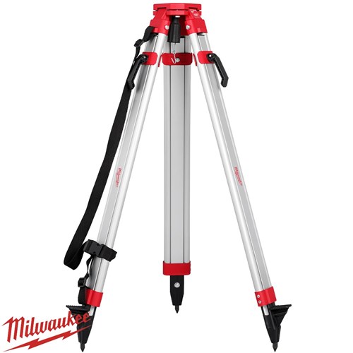 The MILWAUKEE® Rotary Laser Tripod 1,600mm provides a secure and stable mounting solution for a wide range of applications. Constructed from durable aluminium, it withstands jobsite impacts while remaining lightweight for easy transport. The tripod features smooth height adjustment, allowing quick and precise leg positioning for any environment. Reinforced spiked metal feet offer added stability, and a shoulder strap is included for convenient carrying. The tripod is equipped with a 5/8”-11 mounting thread, making it compatible with all MILWAUKEE® Rotary Lasers.