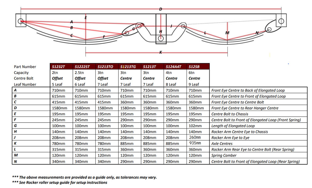 A D K Centre Bolt # Leafs Load Capacity Rim Diameter