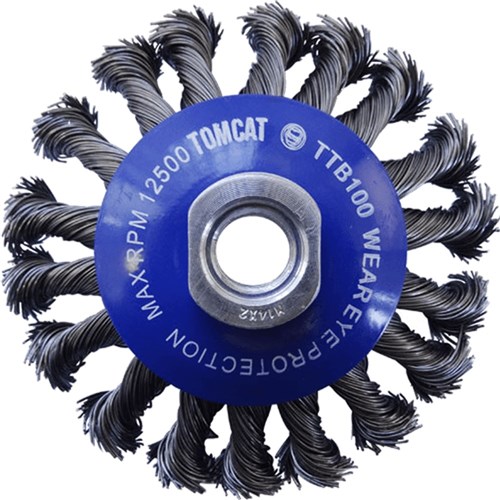 This Tomcat Multi-Thread Twistknot Bevel Brush is excellent for surface preparation & the removal of rust & paint. It is fitted with a Quick Change Multi-Thread which allows for quick & simple fitting of the product onto all angle grinders.
