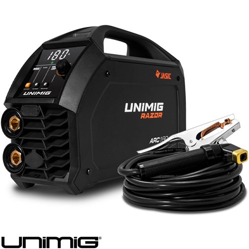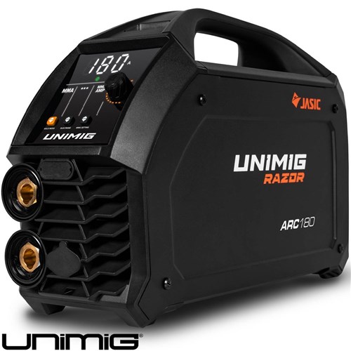Introducing the UniMig Razor Arc 180 Welder, a professional STICK (MMA) machine designed for both worksites and workshops. Packed with advanced features like hot start, arc force, and anti-stick, it provides precise MMA weld control. The machine's versatility extends to DC Lift Arc TIG, offering seamless transitions between applications. With a 15 AMP plug and a 5-year warranty, it ensures reliable performance and durability.