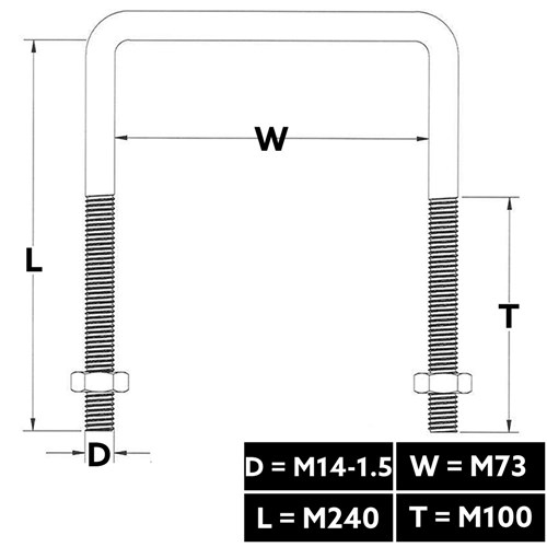 High Tensile square top ubolt gold passivated for superior corrosion resistance.