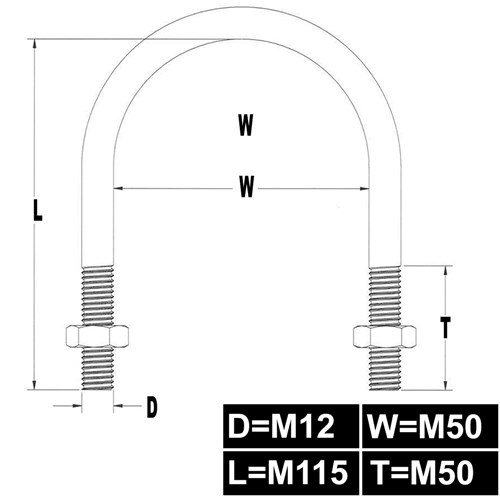U-BOLT ROUND TOP M12X50X115