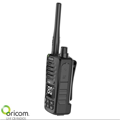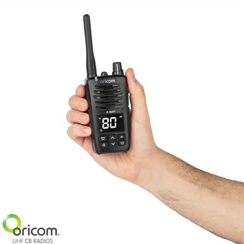 The Oricom Waterproof UHF 80 Channel CB Radio is built for adventure, combining rugged durability with advanced features to keep you connected in any environment. Waterproof and dustproof with an IP67 rating, this compact CB radio floats and flashes in water, ensuring it’s always within reach. With instant replay, a high-capacity lithium-ion battery offering up to 24 hours of use, and a large backlit LCD display, it is as reliable as it is convenient. Whether you're exploring the great outdoors or navigating tough conditions, trust the Oricom Waterproof UHF 80 Channel CB Radio to deliver exceptional performance every step of the way.