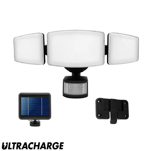 Illuminate your outdoor spaces efficiently with the Ultracharge Wireless Solar Charged 36W Outdoor Light. Featuring 188 high-efficiency LEDs and a triple-head adjustable design, this solar-powered light provides bright 1000-lumen illumination for gardens, pathways, and security areas. Equipped with a 180° motion sensor, adjustable sensor distance and timer, and a durable IP44 rating, it’s designed to deliver reliable, eco-friendly lighting without the need for wiring.