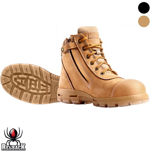 Redback Cobar Safety Work Boot is engineered for efficiency and comfort on the job. Featuring a fast-release side zipper and elastic inner gusset, these boots offer quick and easy wear. The leather clasp with a press stud adds both convenience and security. With a 3D-weave breathable air mesh lining, your feet stay cool and dry throughout the workday. Designed with a lightweight construction, these boots won't weigh you down. Plus, the air cushion midsole and hard-wearing TPU outsole provide lasting comfort and durability, ensuring you stay safe and comfortable on any job site.