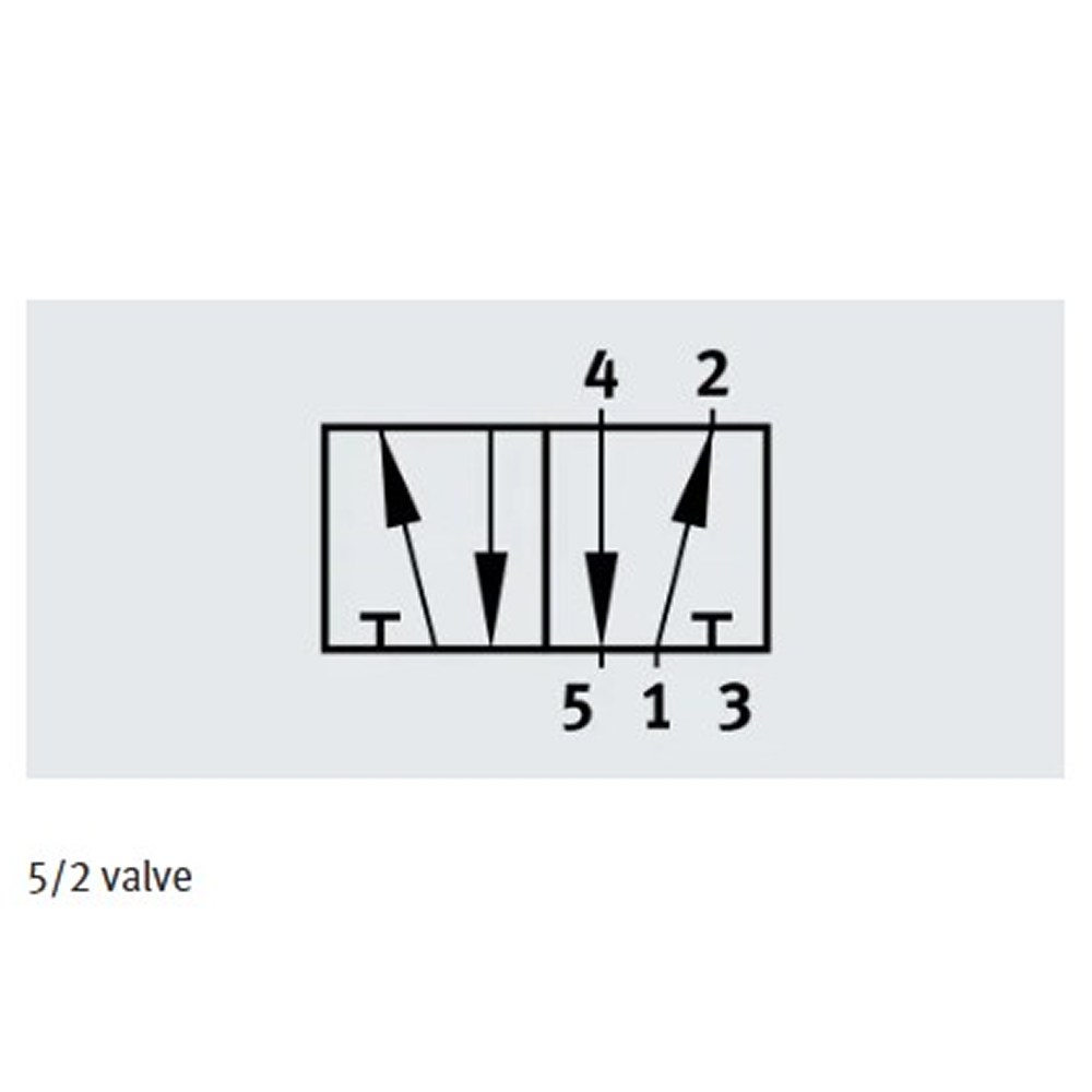 - Features five ports (typically Supply, two Output ports to a cylinder, and two Exhaust ports), allowing it to extend and retract double-acting cylinders.