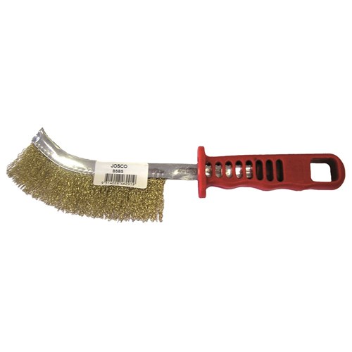 This is a 190mmx12mm brass coated scratch brush. Brass coated bristles are often used to clean metal surfaces as brass coated bristles are soft. Therefore reducing the risk of scratching base metals. Brass coated brushes are often a cheaper alternative to brass bristled brushes.