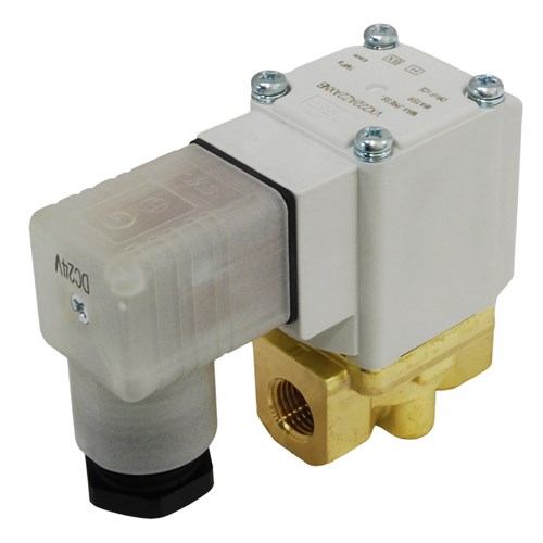 SMC® VX222A-Z2A-XNB is a 2-port direct-operated solenoid valve designed for water, featuring a 1/4" BSP port and 24VDC power with a DIN terminal, surge voltage suppressor, and light. It is a normally closed (N.C.) valve with a C37 (brass) body, NBR seal, and a max operating pressure of 1.0 MPa