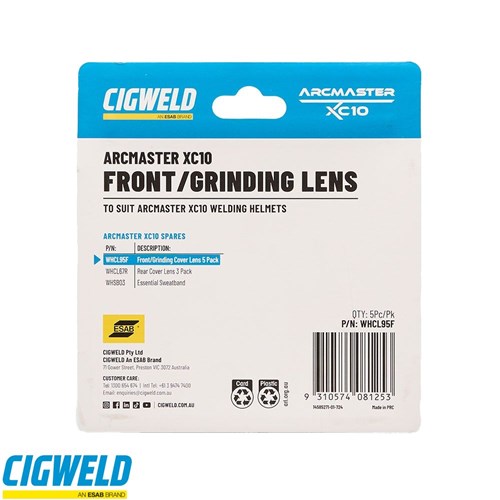 Ensure optimal protection for your Cigweld Arcmaster XC10 welding helmet with the 5-Piece Front Cover Lens. Designed for seamless compatibility, this front cover lens shields your helmet from spatter and damage, maintaining both clarity and safety. The set includes five lenses, providing multiple replacements to keep your helmet in top condition for extended periods. Perfect for welders who need reliable protection and clear visibility while working.