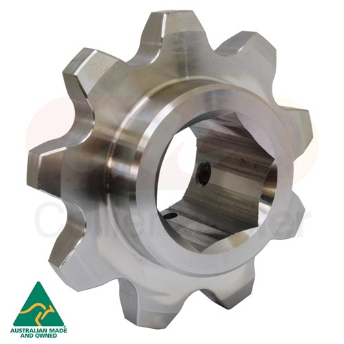 This sprocket is specifically manufactured as a custom alteration done by Reddins Machinery. OE sprockets are supplied as 13 Tooth, this sprocket is 9 Teeth. The smaller diameter has been designed to optimise product feeding.