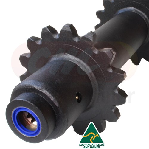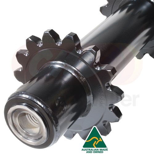 Manuctured as a single piece tube assembly that has 4 x 15 Tooth sprockets machined from grade 1045 steel welded to a central tube and fitted with a spline drive one end and threaded on the other. The sprocket will fit existing Case-IH® combine harvesters as the spline drive is matched to the OEM Case-IH® spline size and dimensions. The sprocket is Australian made, the kit includes a grease nipple, wiper seal, bearing and oil seal that should be replaced while fitting the sprocket.