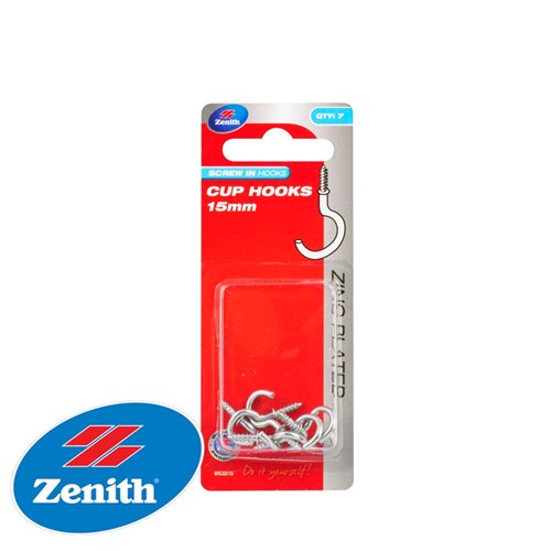Pre-packaged zinc plated shouldered cup hook for screwing into timber.