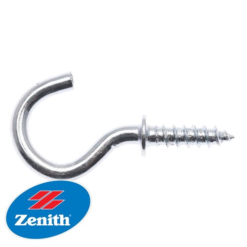 Pre-packaged zinc plated shouldered cup hook for screwing into timber.