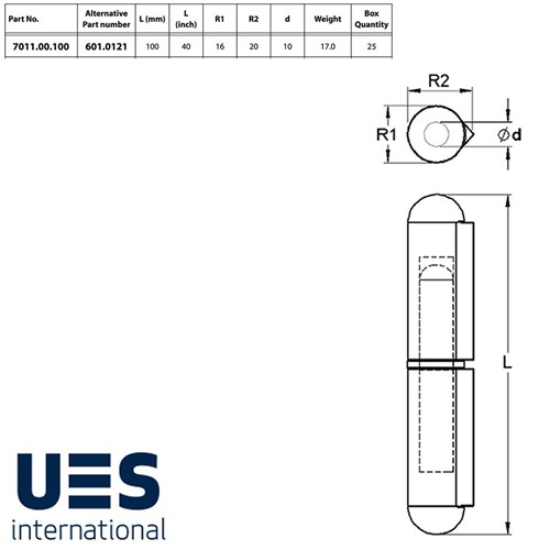 BRASS WASHER PLAIN PIN L=100MM DIA=16MM