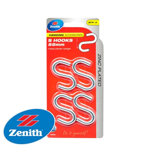 Pre-packaged zinc plated "S" hook.