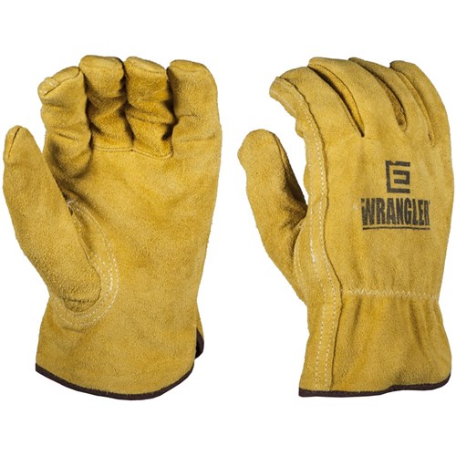 Cow split leather, generous sizing, 250mm long, soft felt lining for warmth & dexterity.