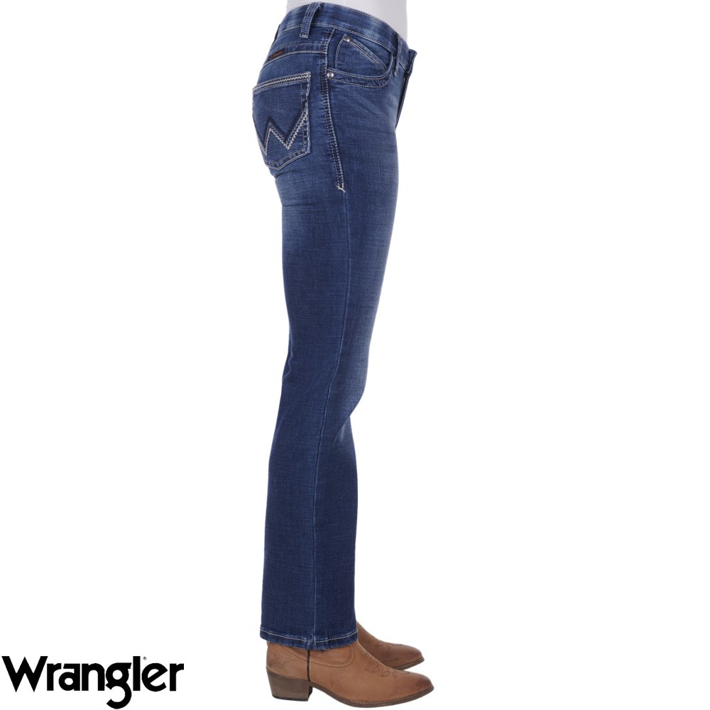 Wrangler’s Ultimate Riding Jean Willow in Davis combines a flattering mid-rise fit with a performance waistband designed for comfort in and out of the saddle. The no-gap elastic waistband provides a secure fit, while the angled watch pocket and two front scoop pockets offer practical detail. With a fitted seat and thigh and a classic boot-cut leg, this 11oz stretch denim delivers durability and ease of movement for everyday wear.