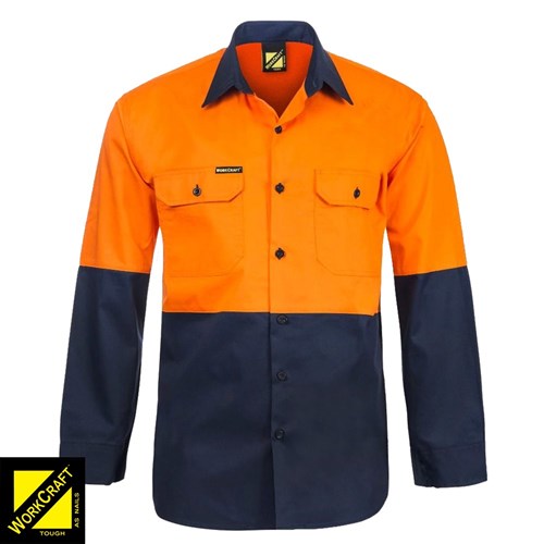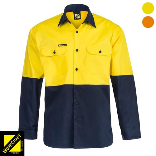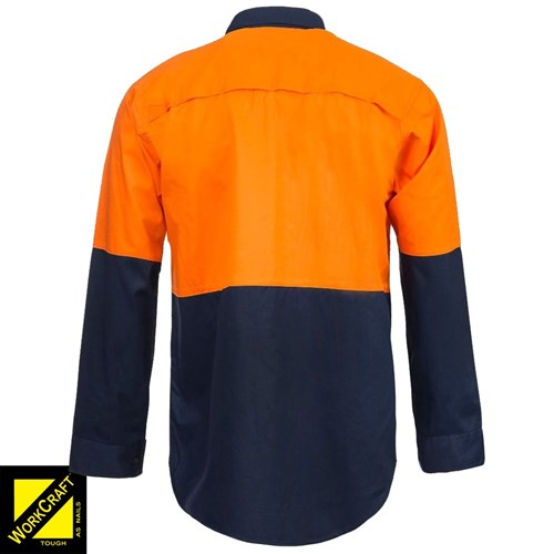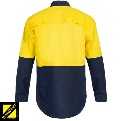 WorkCraft Hi Vis Two Tone Long Sleeve Vented Cotton Drill Shirt