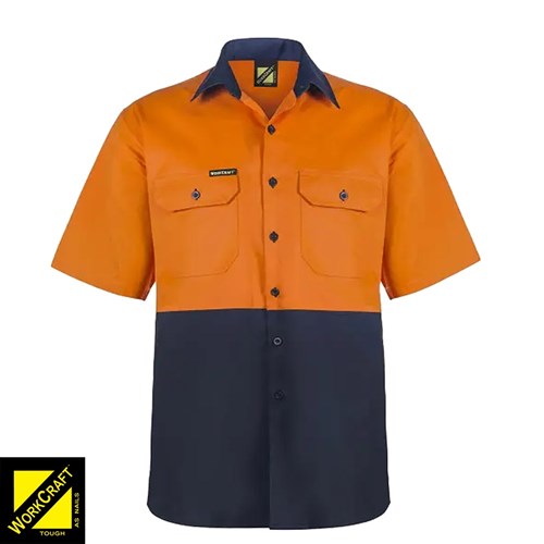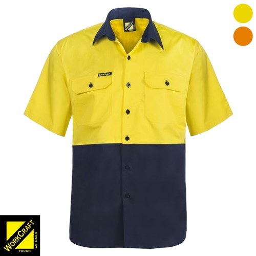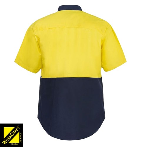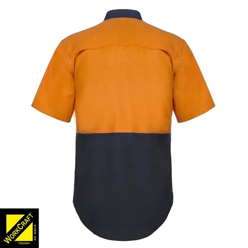 WorkCraft Hi Vis Two Tone Short Sleeve Vented Cotton Drill Shirt