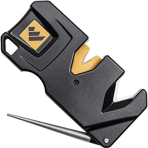 The Pivot Plus Knife Sharpener offers a fast, easy, and effective way to sharpen any knife, including serrated and fine edge tools. Featuring 25° Convex-Carbide sharpening blades, it swiftly restores a sharp edge, while fine grit ceramic rods hone the edge to factory-level sharpness. The 320 grit tapered diamond rod is ideal for serrations and fine edge tools, folding neatly into the sharpener base. Its compact size allows easy stowage in your pack, pocket, tool, or tackle box. With its versatile design and lanyard hole for convenient attachment, the Pivot Plus Knife Sharpene ensures your blades are always ready for action.
