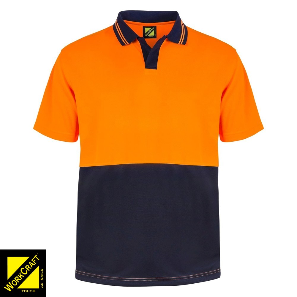 WORKCRAFT Hi Vis Mesh Polo – Food Grade Orange/Navy