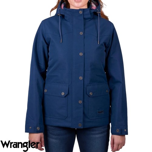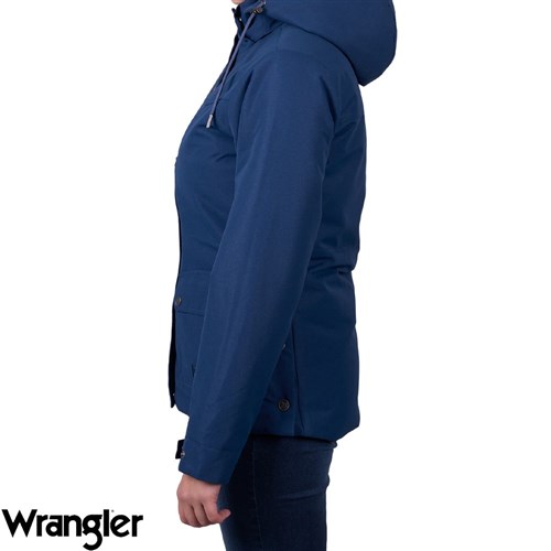 Built for warmth, comfort, and durability, the Wrangler Women's Demi Jacket is your go-to outer layer for chilly days. Crafted from heavyweight polyester with a quilted satin sleeve lining, this jacket combines rugged function with timeless style. Thoughtfully designed with a front storm flap, concealed zip closure, and metal snap detailing throughout, it also features patch pockets with cosy lining and a longer curved back hem for extra coverage.