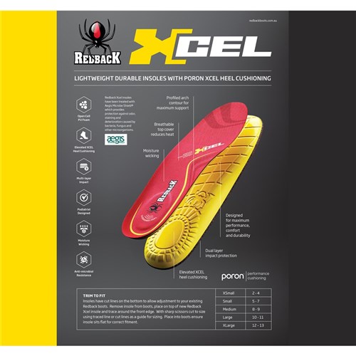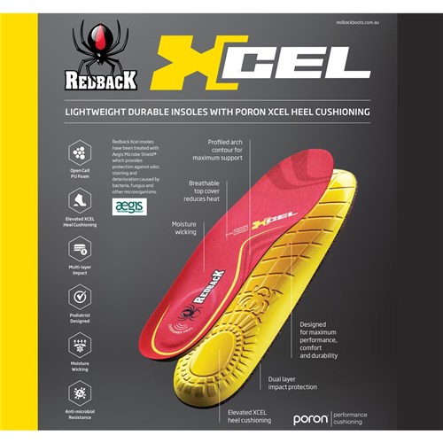 The Redback XCel insole is lightweight durable insole with "Poron XCel" heel cushioning for multilayer impact protection in your favorite pair of Redback boots