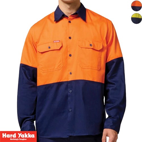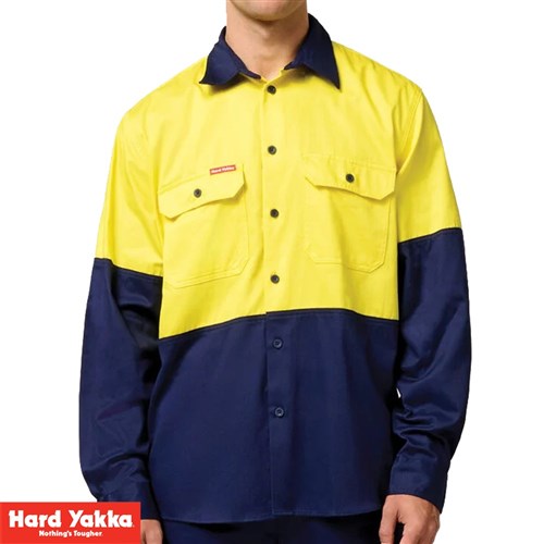The Hard Yakka Core Hi Vis Long Sleeve 2 Tone Shirt - Heavy Weight is a standout choice for those who prioritize both safety and durability on the job. Crafted with heavy-weight materials and designed with visibility in mind, this shirt ensures safety during the night or day.