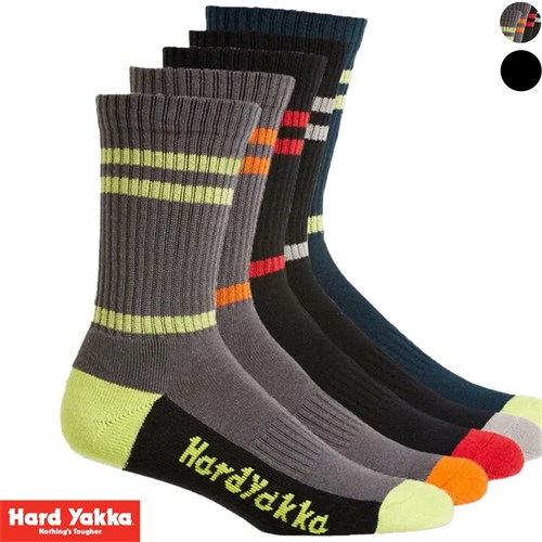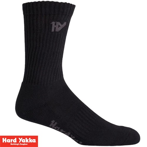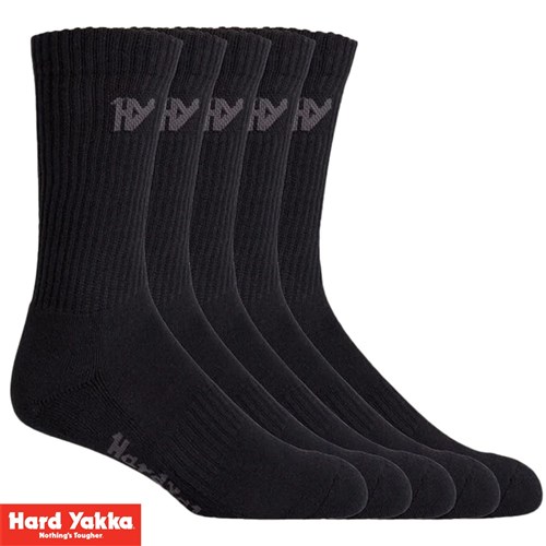 Hard Yakka Padded Cotton Crew Work Sock - 5 Pack