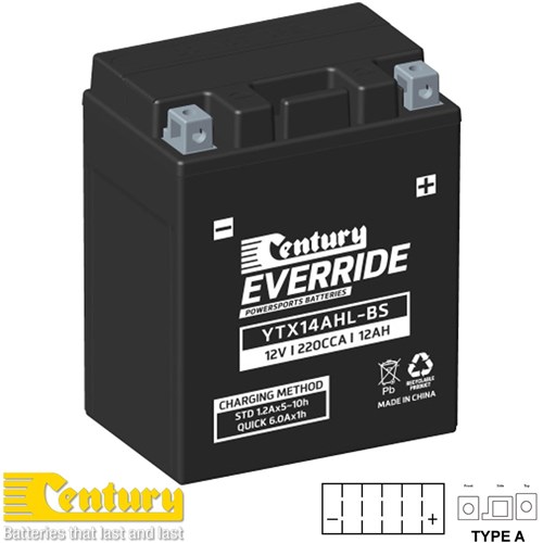 Century High Performance AGM Motorcycle & Powersport Battery YTX14AHL-BS